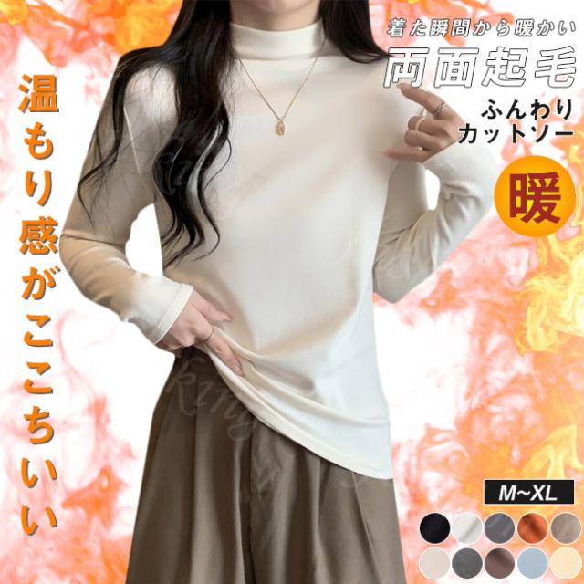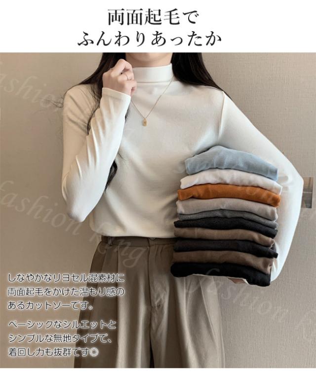 <1点950円!2点購入&クーポンで>両面起毛 カットソー 裏起毛 ハイネック 秋冬 秋新作 送料無料 厚手 微起毛 肌着 WARM 発熱 ストレッチ レディース トップス Tシャツ クリスマスプレゼント