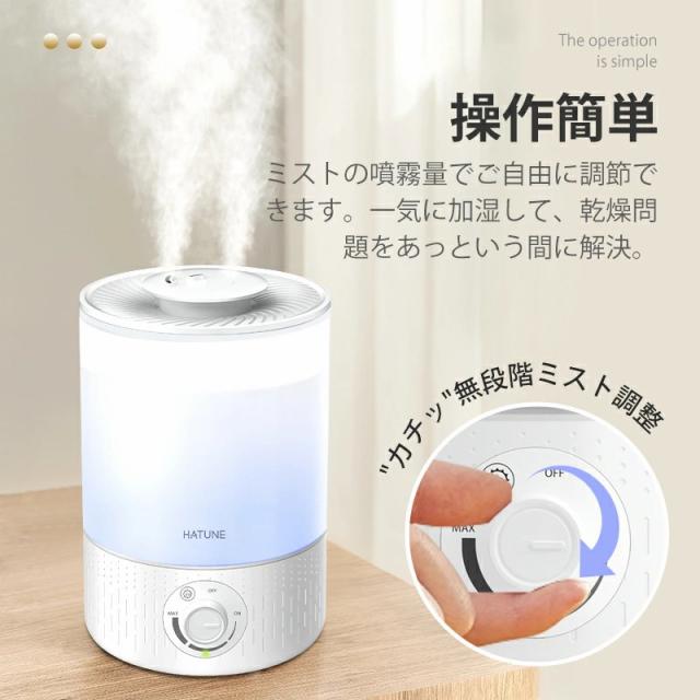 - 3.5Lと、タンクの容量も大きめだけど、上から水を注ぐことが可能なのでやりやすい。また、デザインも白を基調としたシンプルなデザインなので部屋にも合ってて満足です。