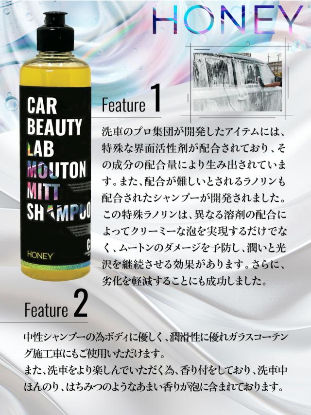 ムートンミットで洗車に最適カーシャンプーハニー 500ml CAR BEAUTY LAB 特殊ラノリン配合でムートンミットに潤いを与え潤滑性がとても良いです カービューティラボ (カービューティーラボ) 洗車用品 洗車グッズ ムートングローブ #14 CBL14