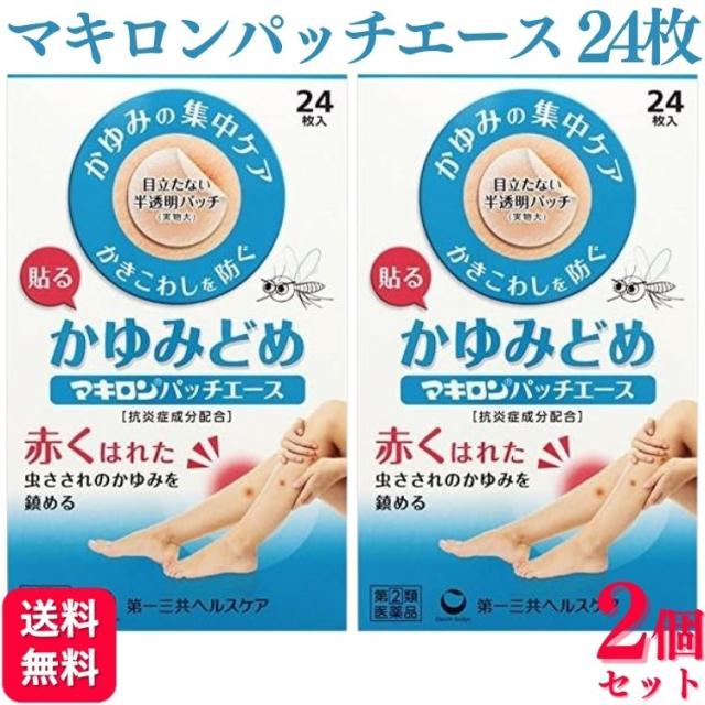 【指定第2類医薬品】【2個セット】 第一三共ヘルスケア マキロンパッチエース 24枚 虫さされ かゆみ止め マキロン マキロン パッチエース 虫さされ かゆみ止め 半透明 貼る 第一三共 送料無料