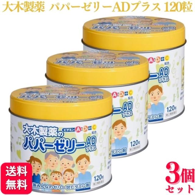 【指定第2類医薬品】【3個セット】 大木製薬 パパーゼリーADプラス 120粒 ビタミン レモン風味 パパー ゼリー ad ビタミン カルシウム 栄養剤 レモン 送料無料