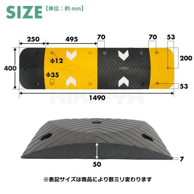減速帯 1490mm×400mm 最大高さ5cm スピードハンプ 安全 減速 速度抑制 駐車場 工事現場 倉庫 工場 KIKAIYA