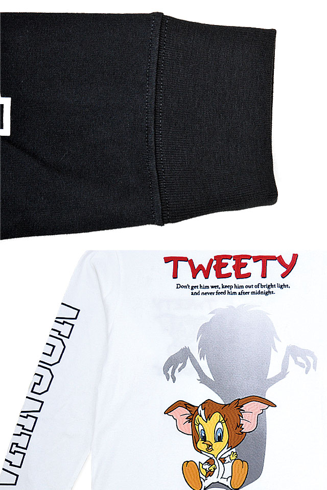 背中にはグレムリンの着ぐるみを身に着けたトゥイーティーが刺繍で描かれています。