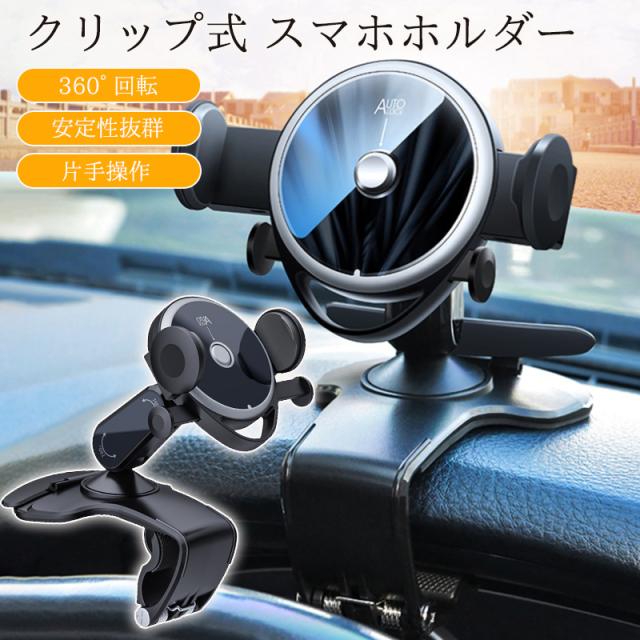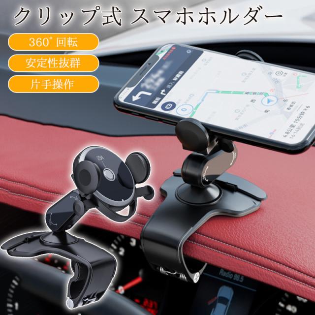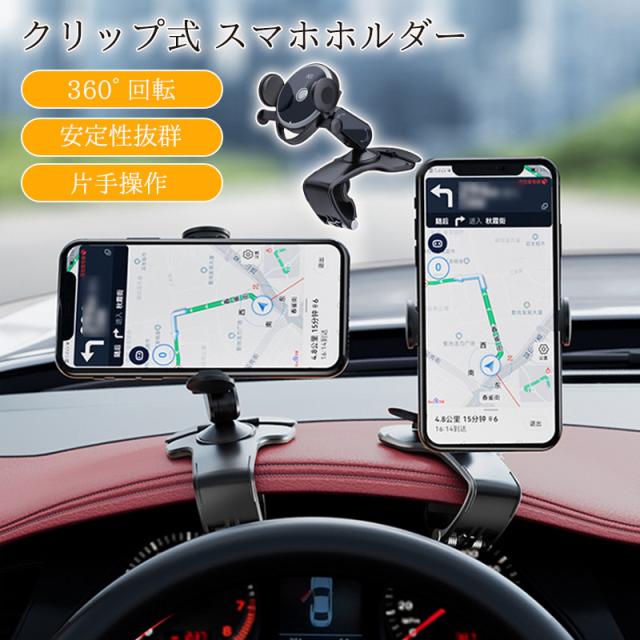 スマホホルダー 車 車載ホルダー クリップ式 携帯ホルダー スマホスタンド ダッシュボード 挟むだけ 車載 車用 自動車 サンバイ