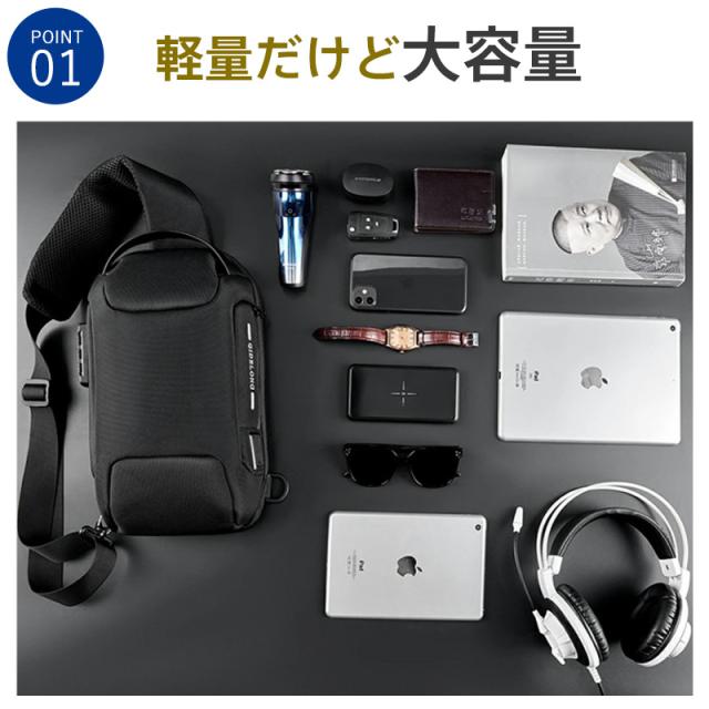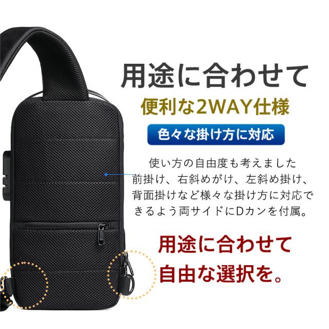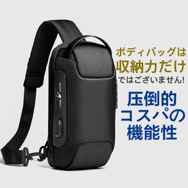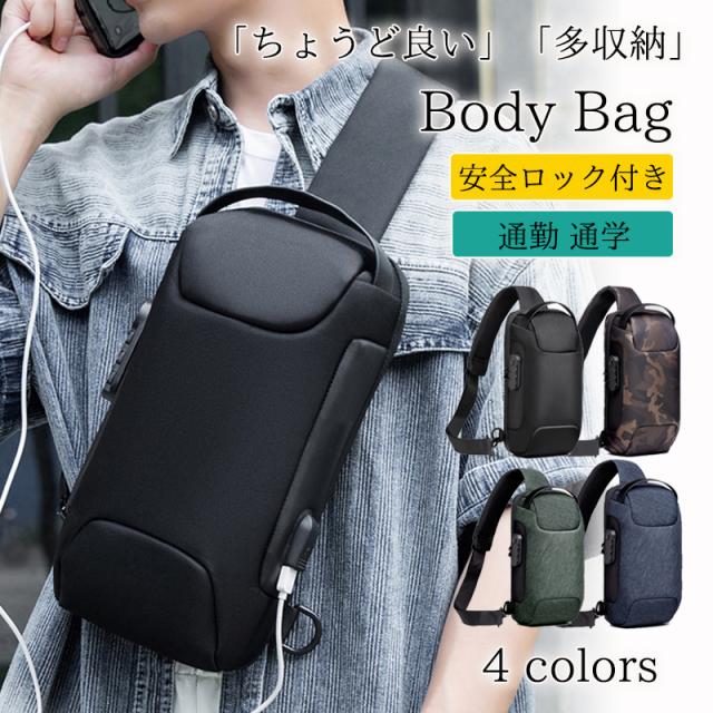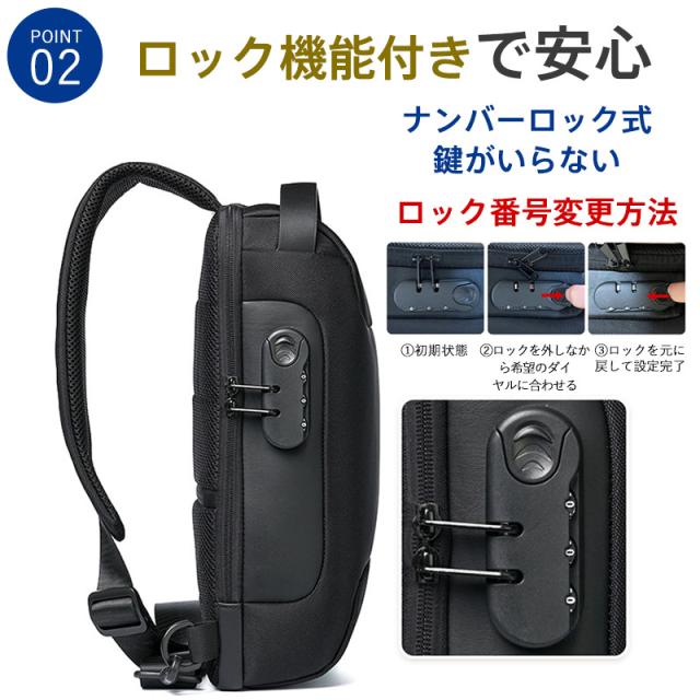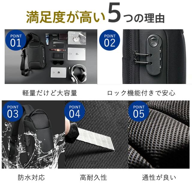 ボディバッグ メンズ レディース ショルダーバッグ 安全ロック付き 大容量 バッグ 大きめ メッセンジャーバッグ 出張 多機能 通