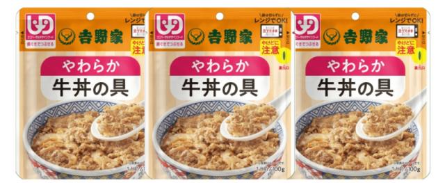 介護食 吉野家 やわらか牛丼の具 636118 100g 3袋セット メール便発送 常温保存 やわらか 歯ぐきでつぶせる 簡単調理