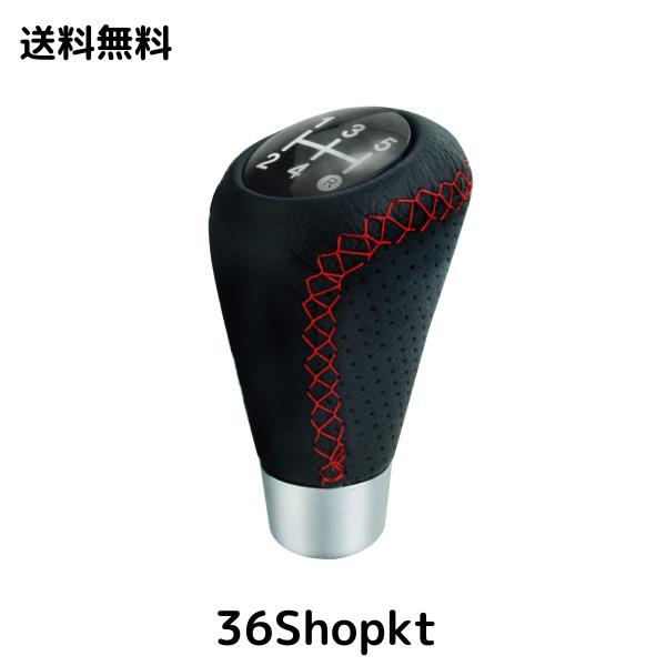 Lunsom 5速 シフトノブ PU革 車用 ギアシフトレバー シフトノブ交換 手動車に適用します (赤ステッチ)