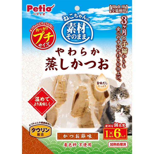 ペティオ 素材そのまま ねこちゃんのやわらか蒸しかつお プチ かつお節味 1切れ×6パック 水産物 猫用おやつ タウリン配合、着色料不使用 3ヶ月〜 全猫種 Petio