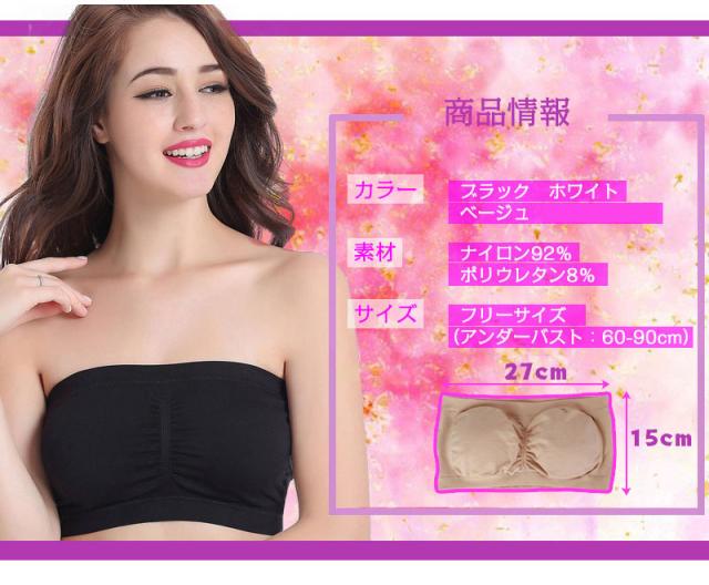 チューブトップ ブラ カップ付 伸縮性