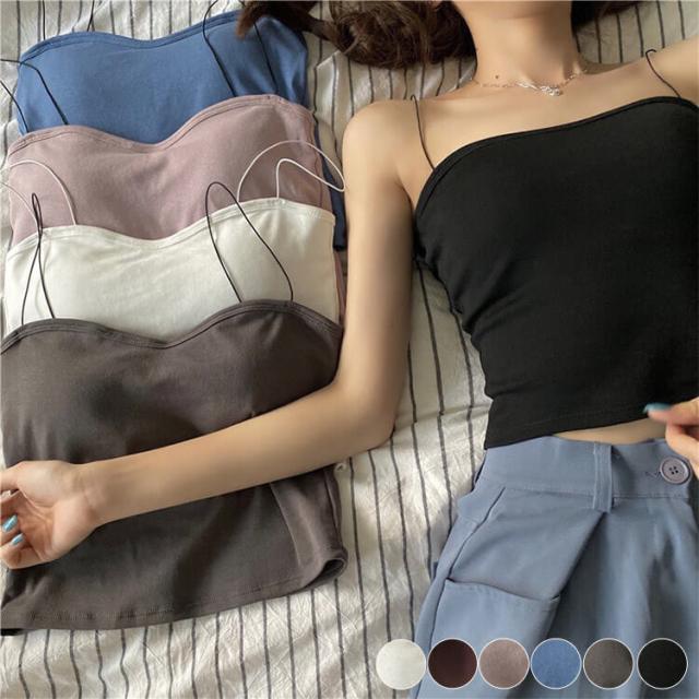 キャミソール レディース ベアトップ チューブトップ カップ付き へそ出し クロップド丈 肩紐 インナー ショート丈 シンプル 無地 韓国