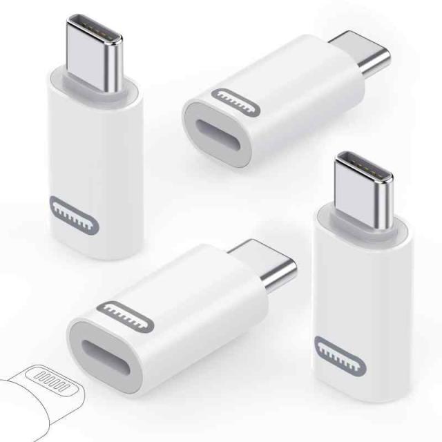 MoKo ラType C変換用アダプタ Type C to イトニング 変換アダプター データ転送 PD充電対応 アルミシェル 軽量小型 タイプC変換コネクタ (White*4P, LメスCオス)