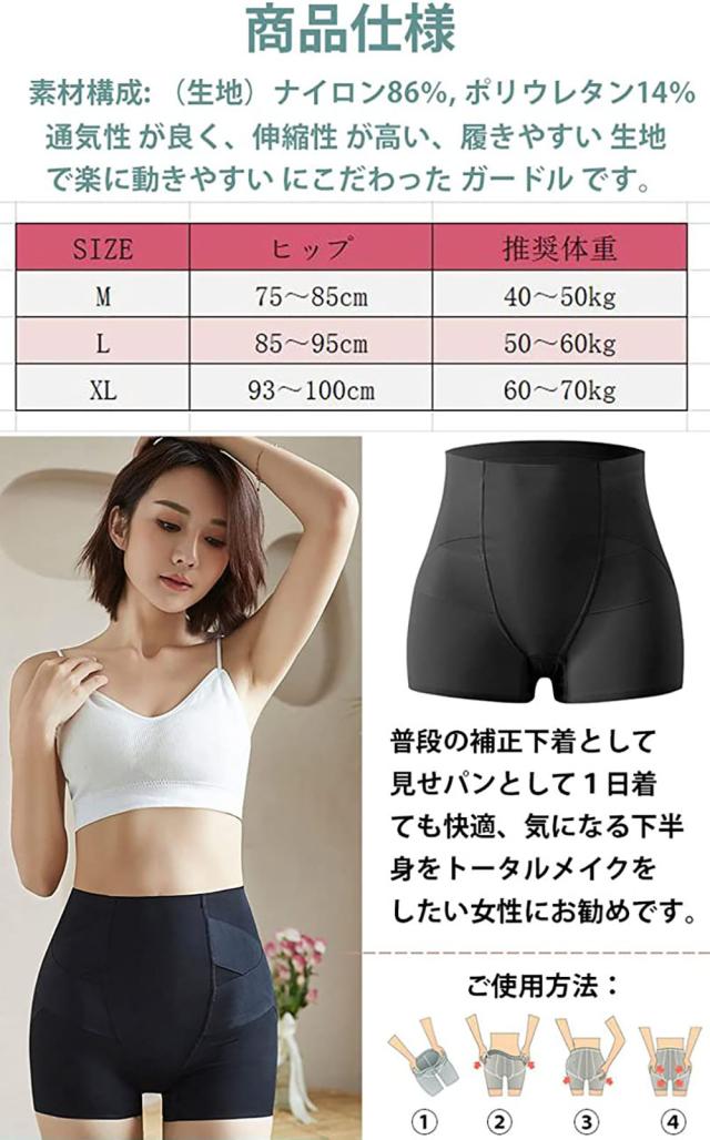 お腹引き締め:フロント2重生地の構造で、ぽっこりお腹を包み込み、程よい締めつけで、スッキリウエストダウン 普段の補正下着として見せパンとして1日着ても快適、気になる下半身をトータルメイクをしたい女性にお勧めです。生産国 made in china