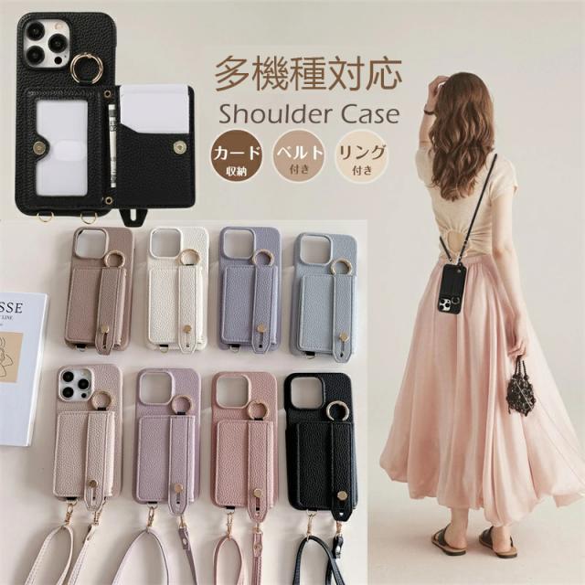 背面ベルト付き iPhone16 15 14 スマホケース ショルダー タイプ iPhone16Pro iPhone16Plus iPhone16ProMax iPhone15Pro iPhone15Plus iPhone15ProMax iPhone14Pro iPhone14Plus iPhone14ProMax ケース 肩がけ 首掛け 斜め掛け おしゃれ 大人 ベルト リング付き