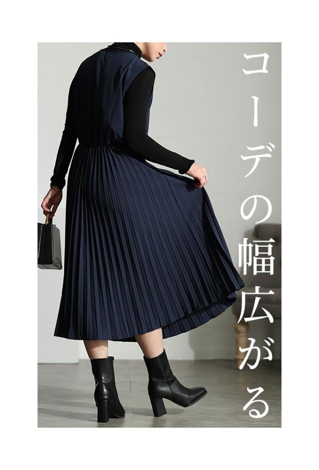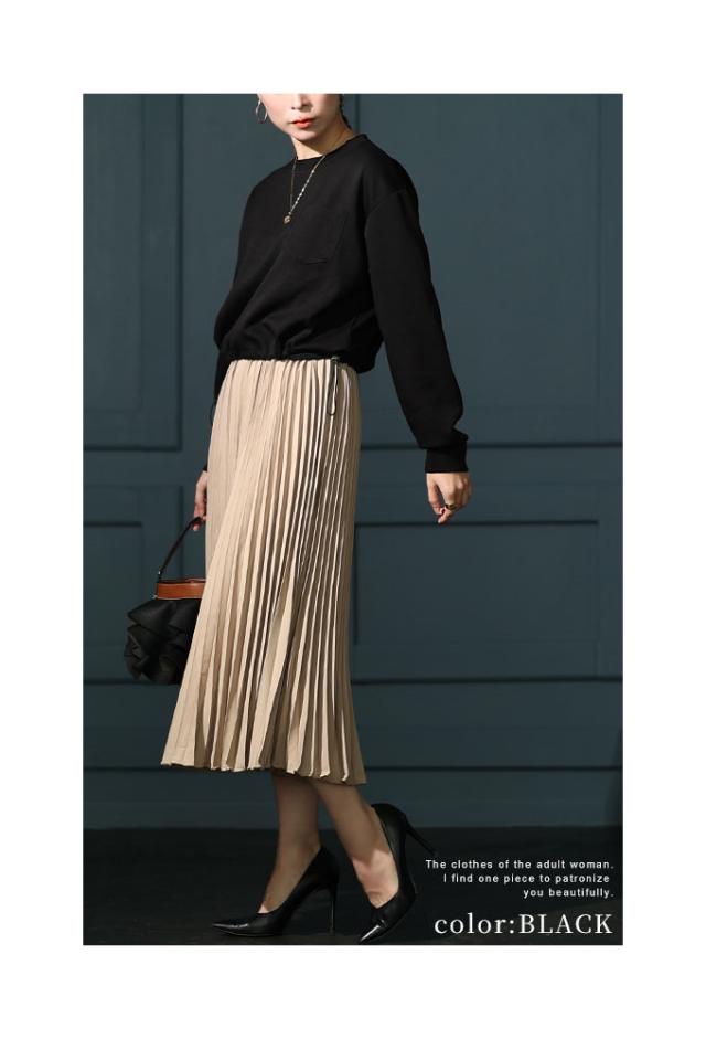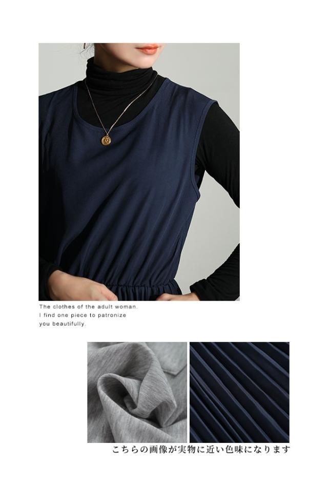 春新作 着れば即綺麗めカットソー&ワンピースセットアップ レディース ファッション セットアップ カットソー ワンピース プリーツ ミモレ 長袖 ノースリーブ 30代 40代 50代 60代 サワアラモード sawaalamode otona 大人 cawaii 可愛い 洋服 かわいい服 swjun-897s
