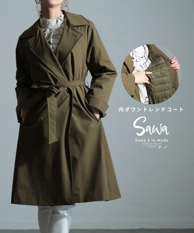 春新作 綺麗めハンサムを約束するダウントレンチコート レディース ファッション アウター トレンチ コート ダウン フェザー ベルト 膝丈 ミドル カーキ 30代 40代 50代 60代 サワアラモード sawaalamode otona 大人 cawaii 可愛い 洋服 かわいい服 swmy-0026