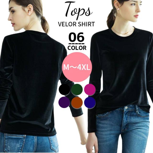 カットソー レディース 長袖 tシャツ きれいめ ロンt 春 秋 冬 トップス ベルベット ベロア クルーネック プルオーバー 大きいサイズ ゆったり 大人 おしゃれ かわいい 上品 フォーマル シンプル 無地 オフィスカジュアル 通勤 20代 30代 40代 黒