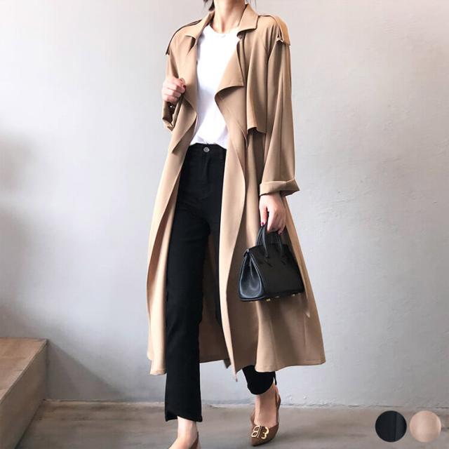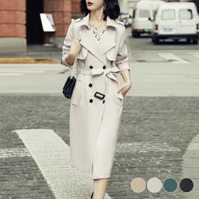 商品説明 韓国デザインのロング丈エレガントトレンチコート。 オープンカラーデザインのトレンチコート。 肌に優しく快適な同色の裏地付き。 ミックスカラーの樹脂ボタンを使い、ダブルブレストボタンデザインに。 袖口ベルトにはボタンが二つ付いているので、お好みで調節して。 ピンと張りのある素材とクールなデザインを結合させ、エレガントな雰囲気のアウター。 スタンダードなオープンカラーデザインはデコルテラインをキレイ見せ。