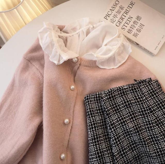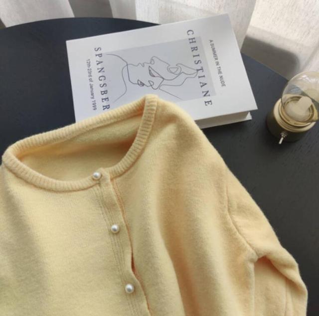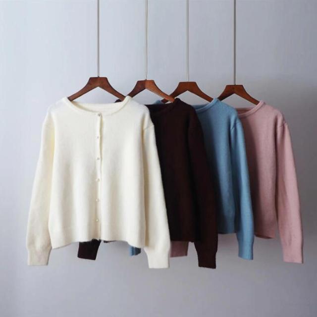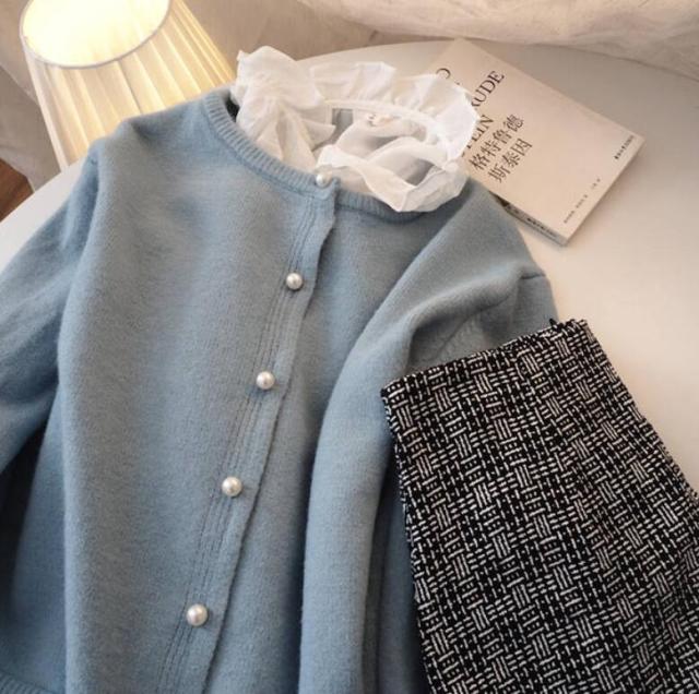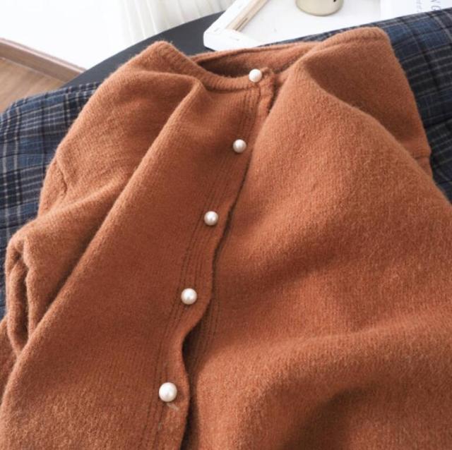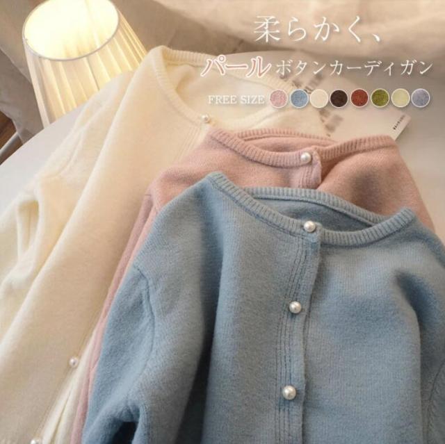 パール ボタン カーディガン 秋 春