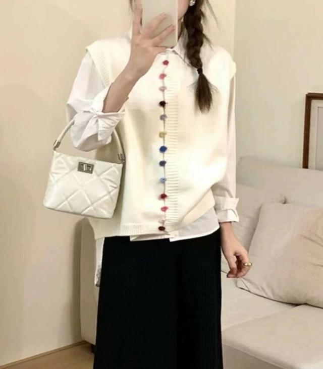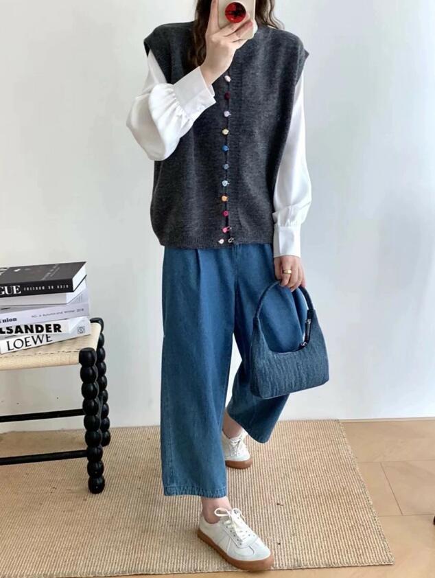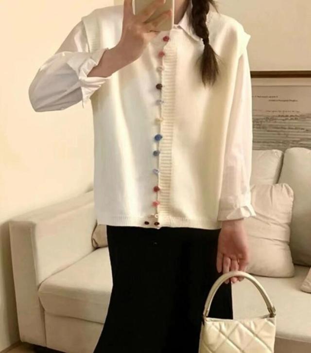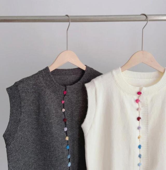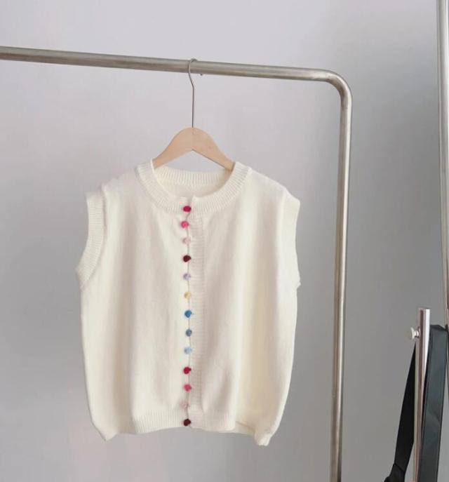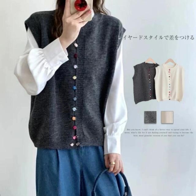 カラフル ボタン ラウンドネックノースリーブ 春ベスト おしゃれ 着回し ショート丈 トップスレディースファッション トップス ベスト ジレ