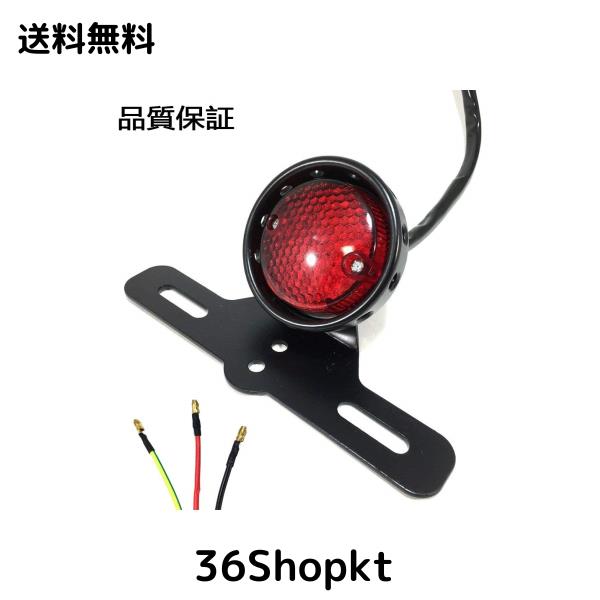 ビンテージ LED テールランプです。 【商品仕様】 全体サイズ(約):170mm×100mm×100mm ライト部(約):直径60mm×奥行60mm ステー部(約):170mm×30mm 取り付け部:センター6mm穴 2か所(穴中心~中心1.5cm) 電圧:12V カラー:ブラック ライト発光色:レッド ナンバー灯発光色:ホワイト 配線:赤テール/黄ストップ/黒アース ホワイトのナンバー灯と、ステーとライトが一体型なので簡単に取り付けできます。 ビンテージな丸目タイプのLEDがかっこ良いです♪ ドレスアップ・カスタム・加工等がお好きな方にぜひおすすめです!! ※取扱説明書は付属しておりません。 ※非防水ではございませんが、防水加工されることをお勧めします。 ※取付には加工が必要となる場合があります。 ※汎用品ですので様々な車種に対応しますが、サイズ・形状を ご確認の上ご購入をお願いいたします。 ※配線の色は入荷時期により異なる場合がございます。