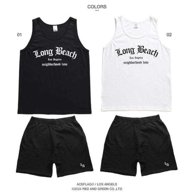 ACE FLAG 上下セット ブランド ノースリーブ Tシャツ タンクトップ ハーフパンツ メンズ 春夏用 黒 白 大きいサイズ エースフラッグ セットアップ Long Beach ロングビーチ LBC ビッグシルエット b系 ヒップホップ ストリート系 ハイ 新作 AF-SE-TK-039