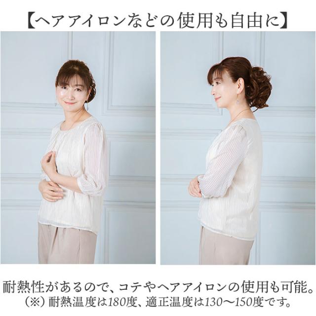 | 商品説明 | 【一瞬で手軽にスタイルチェンジ】 ・バレッタでワンタッチ!ボリュームをプラスする「プリシラ バレッタウィッグ」。 【土台にパチンと固定して被せるだけ】 ・自毛で土台の団子を作り付け根にバレッタクリップを差して固定。団子にネットを被せて完成。 【不器用さんでも安心のストレッチ性】 ・ネットまわりは伸縮性のあるゴム素材。土台をすっぽり包み込めるつくり。 【挑戦しやすいシンプルカール】 ・高めのお団子や、低い位置でのまとめ髪に。ややエッジの効いたカールはミセスにもぴったり。 【人毛のような自然な仕上がりを実現】 ・国内メーカー製耐熱ファイバー100%。凹凸加工を施し、ツヤを軽減。 【ヘアアイロンなどの使用も自由に】 ・耐熱性があるので、コテやヘアアイロンの使用も可能。 (※)耐熱温度は180度、適正温度は130〜150度です。 |
