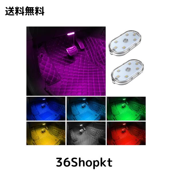 車内照明LED読書灯 7色切り替え USB充電 タッチミニアンビエントライト 車両 汎用【2個/パック】