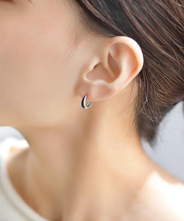 メタルとモノトーンカラーの組み合わせが、横顔をクールに仕上げるピアス。