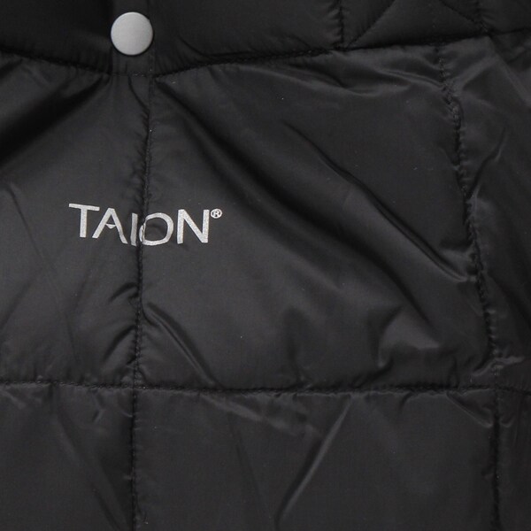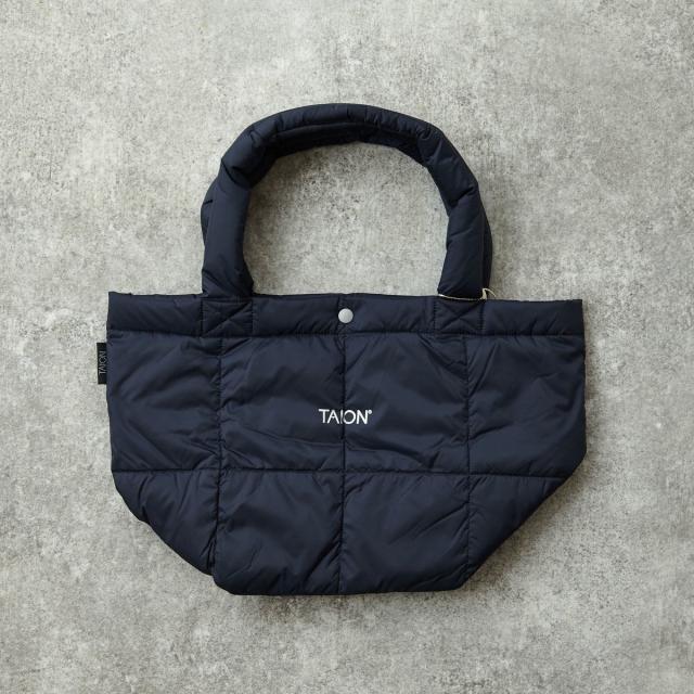 フロント上部に小さめの”TAION”ロゴプリントがアクセントになったダウンランチトートバッグです。