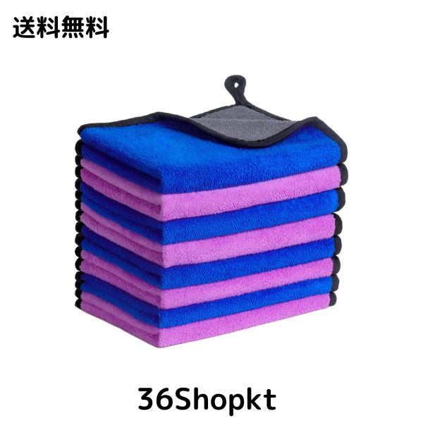 1 材質とサイズ:洗車タオルサイズ約40cm*30cm(厚さ0.4cm)製品重量、0.5kg、8枚入りセット(紺*4 紫*4)、両面二色厚手 マイクロファイバーの柔らさ、耐久性、変形なし、色褪せなし、細かい織り方を採用し、抜け毛がなく、自動車や家具を傷つけず、肌にも優しい素材である。