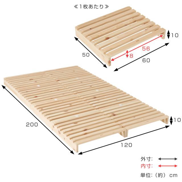 国産ひのき パレットベッド セミダブル 8枚セット すのこ 天然木 高耐荷重 ( フロアベッド ロータイプ 連結 パレット ベッド ステージベッド ヒノキ アレンジ 耐荷重350kg 無塗装 木製 ナチュラル 120×200cm )