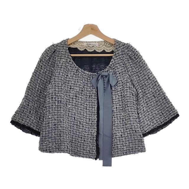 Bilitis dix-sept ans 2915-660 サイズ36 フランス製ツイード ノーカラージャケット ライトブルー ビリティスディセッタン【中古】4-1009T♪