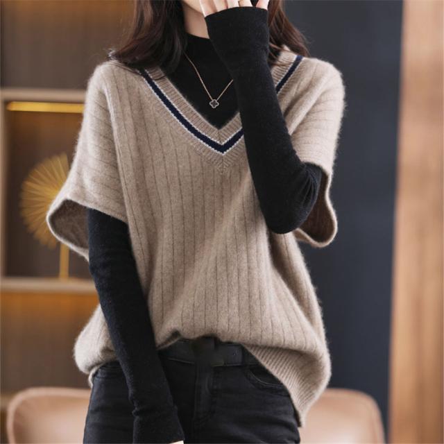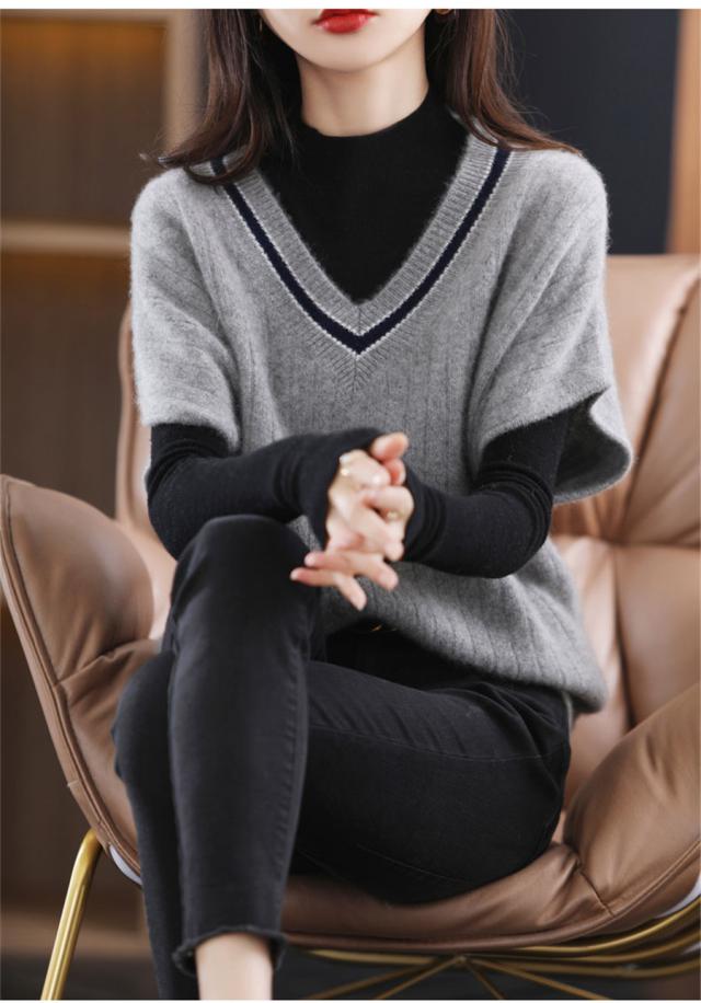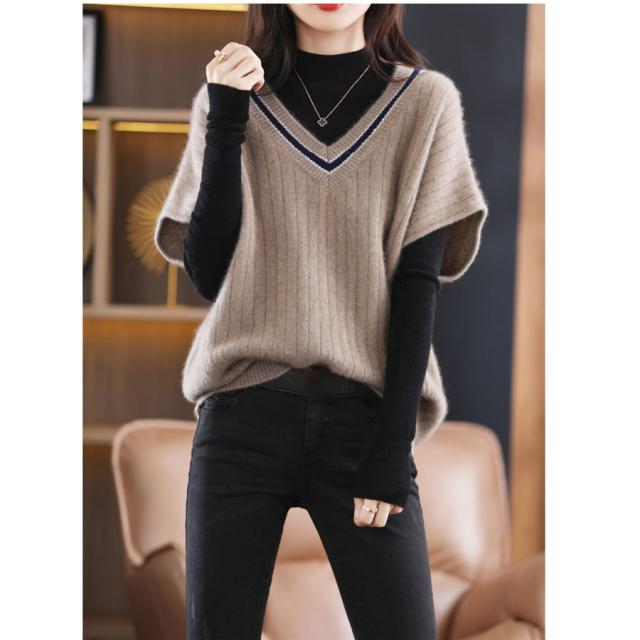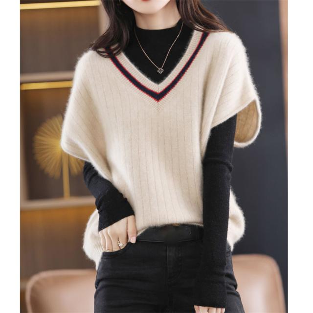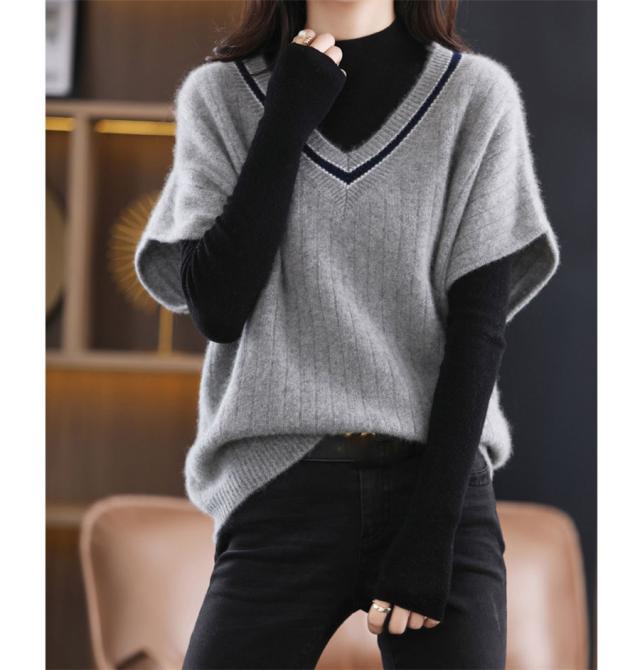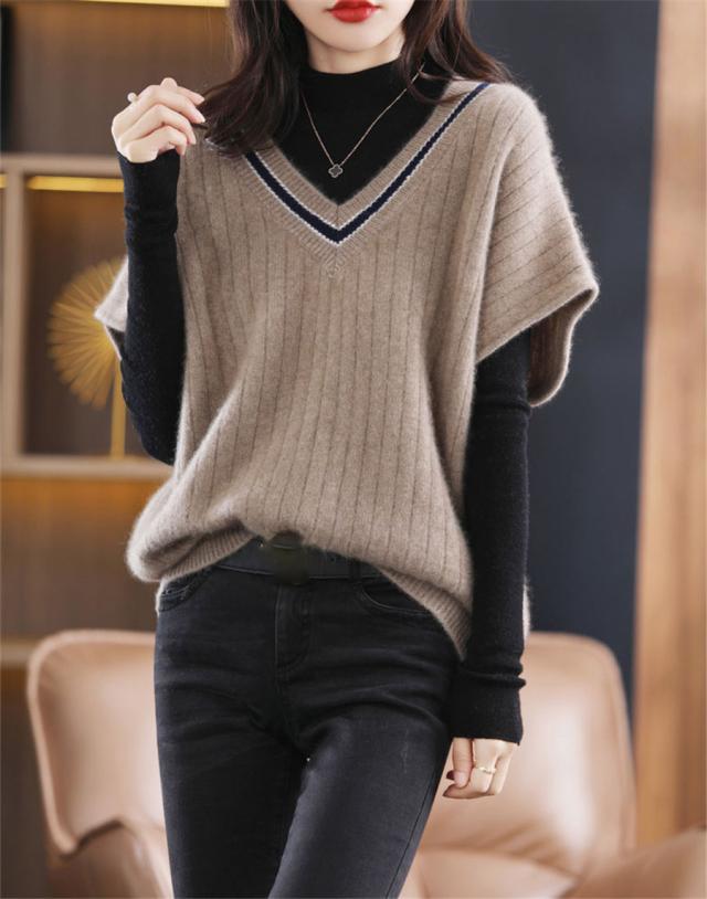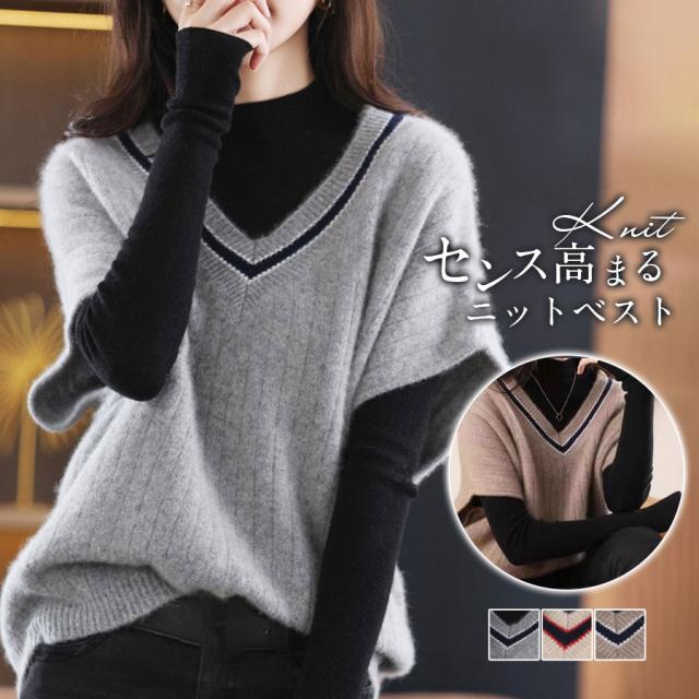 ベスト レディース ジレ ニット 秋 冬 春 セーター Vネック 暖かい 防寒対策 保温 プルオーバー ノースリープ レイヤード