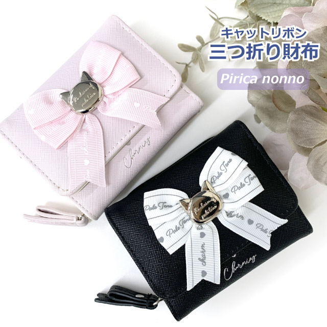 ![]() ![]() ![]() ![]() ![]() ![]() ・Pirica nonno ピリカノンノ キャットリボン フロントリボンとネコプレートがかわいいキッズ・ジュニア向けのミニ財布。 カード収納も豊富で小銭入れは使いやすい三つ折りタイプ。 小学生・中学生・高校生の女の子に人気で、お誕生日やクリスマス等のプレゼントにもおすすめです。
