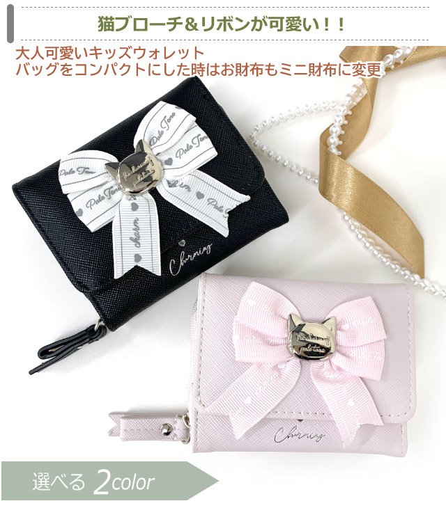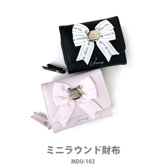 キッズ 財布 女の子 Pirica nonno キャットリボン ミニラウンド財布 mdu-102 子供 女子 小学生 中学生 ファスナー財布 かわいい ミニ財布 子供 ウォレット 3つ折り財布 修学旅行 人気 小さい財布 コンパクト さいふ 三つ折り財布 誕生日プレゼント キッズ財布 リボン ネコ