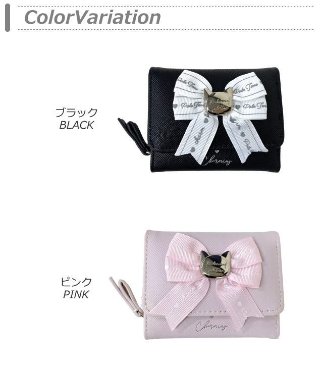 ■イメージ・その他:おしゃれ お洒落 人気 人気 ランキング 可愛い かわいい 使いやすい 大容量 黒 ブラック ピンク りぼん リボン 猫 ねこ ネコ キッズ財布 大人可愛い 大人かわいい 大人っぽい レディース財布 3つ折り財布 三つ折り財布 小さめ ミニ ミニサイズ 包装 無料ラッピング ラッピングバッグ