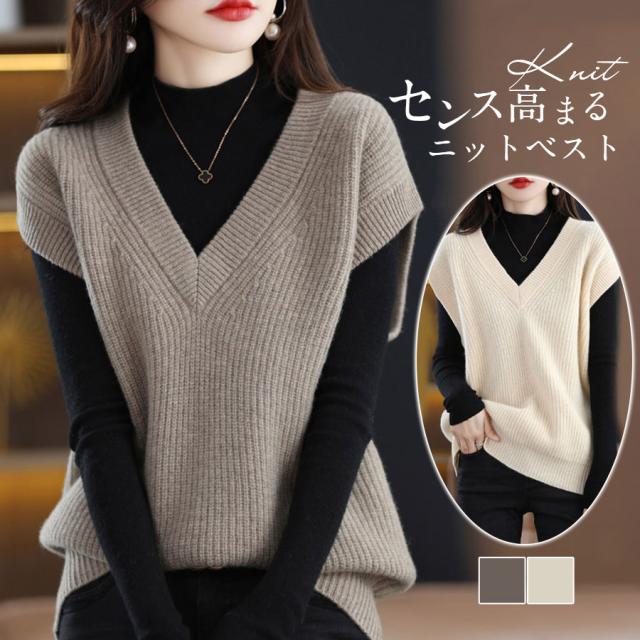 ベスト レディース ジレ ニット 秋 冬 春 セーター Vネック 暖かい 防寒対策 保温 プルオーバー ノースリープ レイヤード