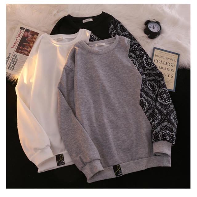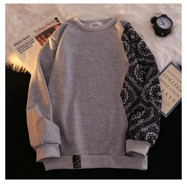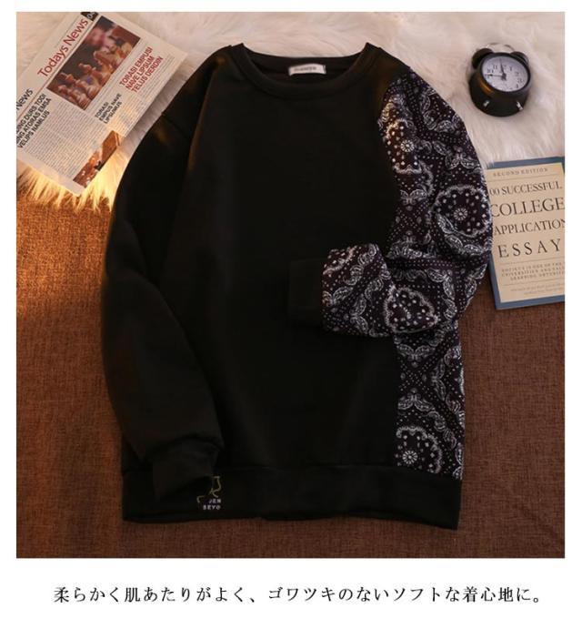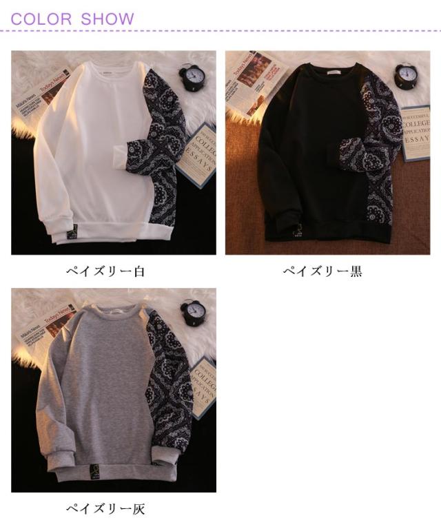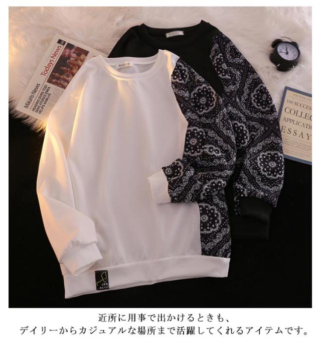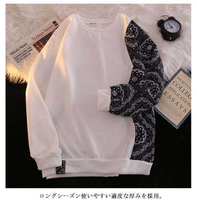 パーカー メンズ おしゃれ ペイズリー柄 切り替え プルオーバーパーカー トレーナー 長袖 カジュアル ルーズ 原宿系 ストリート系 大きいサイズ ブラック ホワイト グレー M L XL 2XL
