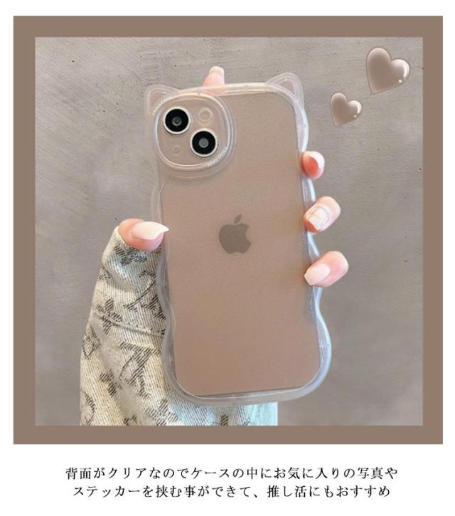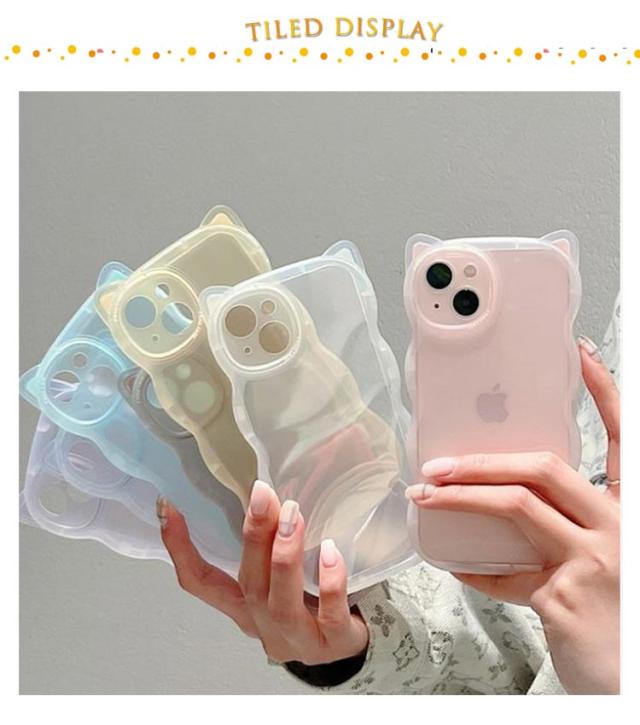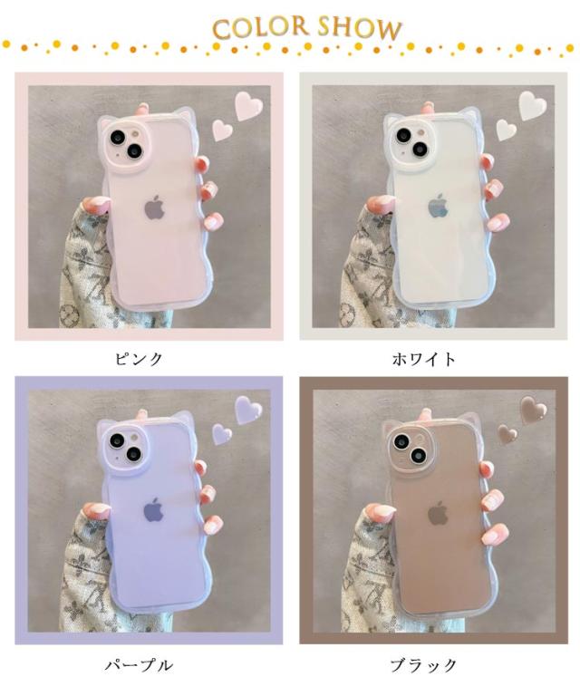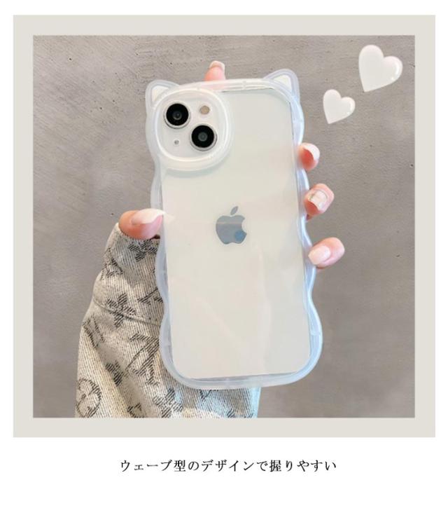 pro クリア スマホケース max 16Pro 透明 ケース ウェーブ型 iPhone14 猫耳 韓国 iPhone15 かわいい ケース iPhone 16Plus ケース 16ProMax スマホケース iPhone15Pro 14 15 Plus ProMax iPhone13 12