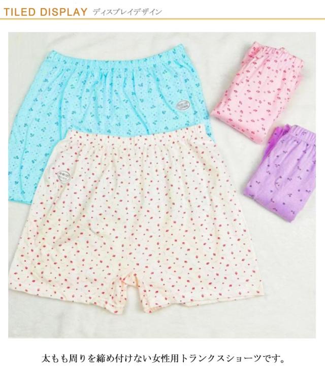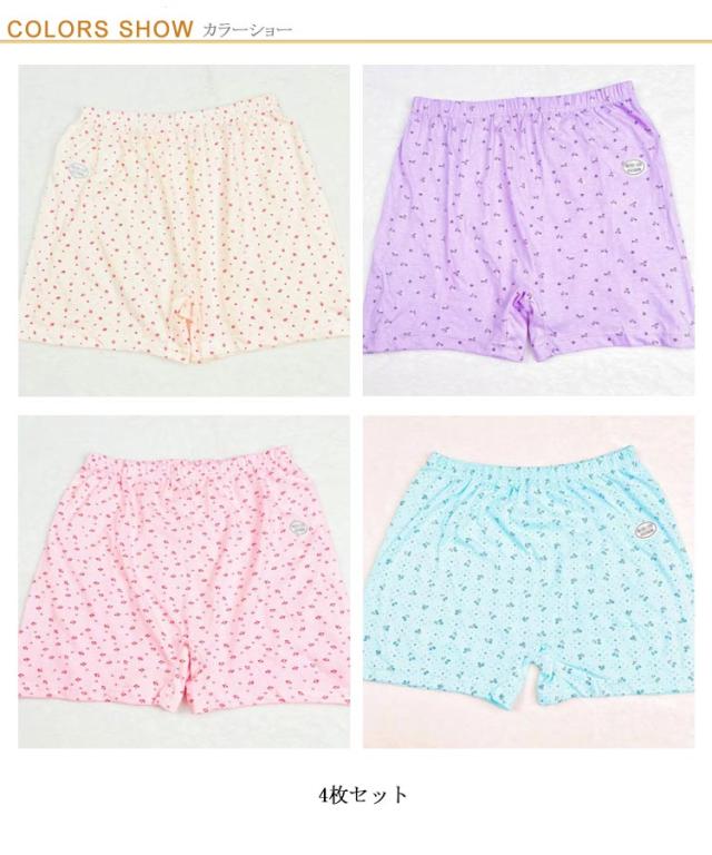 | 花柄のお得な4枚組。 太もも周りを締め付けない女性用トランクスショーツです。 可愛くはけるトランクスタイプのショーツ。 お腹まですっぽりの深ばき丈。 優しい肌触りの綿生地で吸汗性、通気性があります。 ウエストはゴムでお腹を締めつけにくく、 裾広がりで履きやすく、脱ぎやすい。 | |