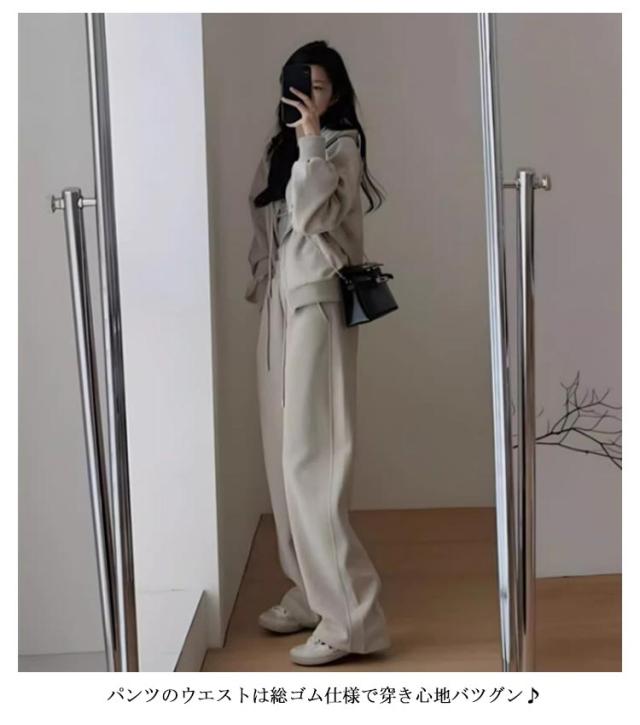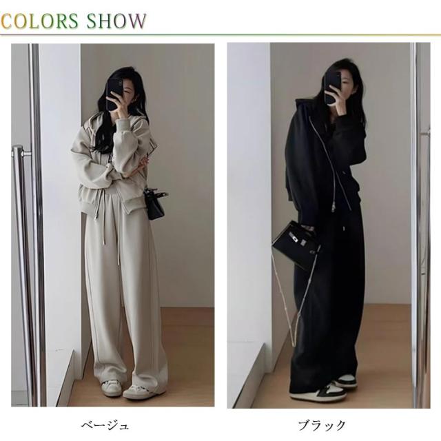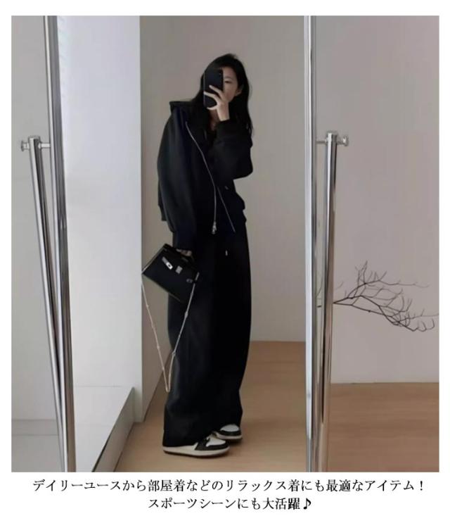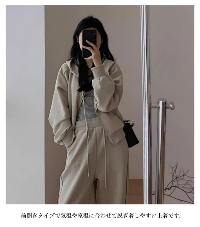 ロングパンツ 無地 ルームウェア ゆったり 上下セット レディース ジップアップ ジャージ スウェット セットアップ 長袖 部屋着 フード付き 春秋用 ジャージ ランニング ウォーキング 散歩 カジュアル 大きいサイズ