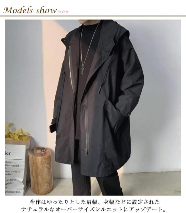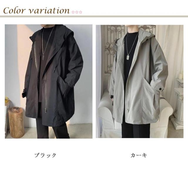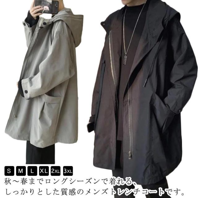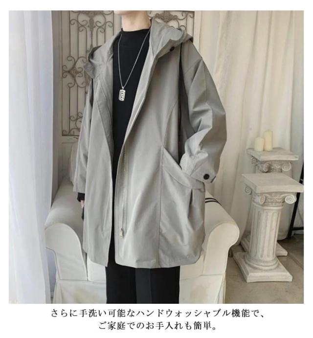 春秋 メンズ ロング ウンテンパーカー 薄手防風 フード付き コート スプリングコート ジャケット マブルゾン 撥水 ウインドブレーカー モッズコート カジュアル 軽量 アウター トレンチコート ゆったり 体型カバー ビッグシルエット