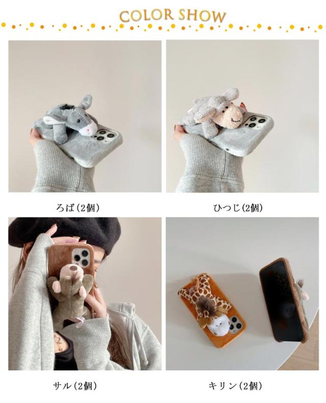 | サル・ひつじ・キリン・ろばのぬいぐるみ付き可愛らしいiPhoneケース。 TPU素材で高い耐衝撃性を持ちます。 iPhoneをしっかり保護しながらも、可愛く見せてくれるケースです。 他にはないデザインで目を引くこと間違いなし! プレゼントにもおすすめのアイテムです。 | |