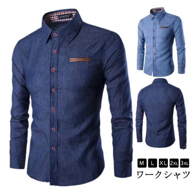 長袖 トップス ビジネスシャツ デニムシャツ 夏 ワークシャツ 長袖シャツ シャンブレーシャツ アメカジ シャツジャケット 無地 カジュアルシャツ 綿 ボタンダウンシャツ 大きいサイズ 春 50代 秋 20代 30代 40代 メンズファッション 60代 ビジネス ワークシャツ 男性