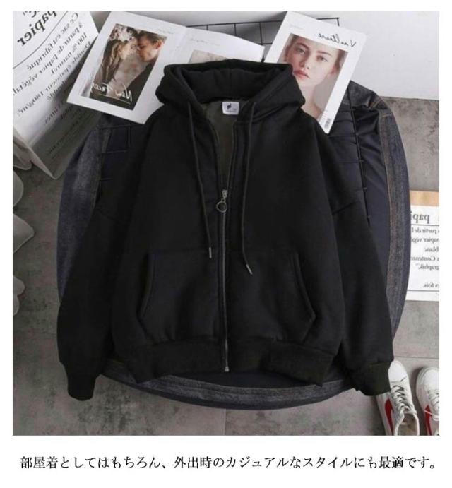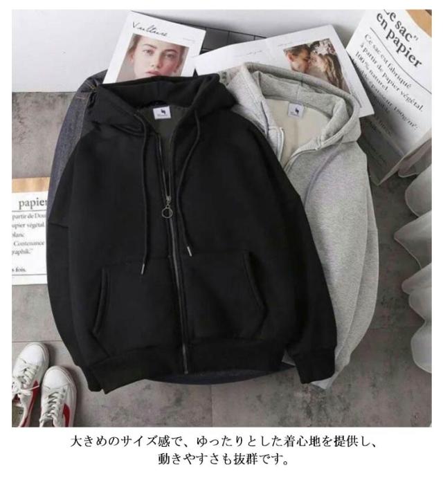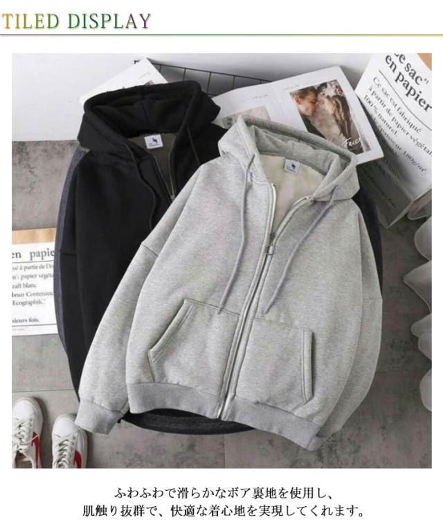| 快適な着心地とリラックスした着用感がポイントのジップアップパーカーです。 ふわふわで滑らかなボア裏地を使用し、肌触り抜群で、快適な着心地を実現してくれます。 大きめのサイズ感で、ゆったりとした着心地を提供し、動きやすさも抜群です。 部屋着としてはもちろん、外出時のカジュアルなスタイルにも最適です。 スキニーパンツと合わせるモダンなスタイルにも、トレンドのワイドパンツと合わせるリラックスした雰囲気にもぴったりです。 | |
