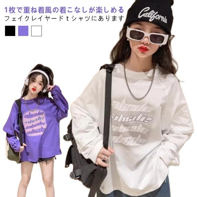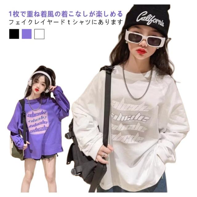 キッズ ジュニア 薄手 子供服 長袖 小学生 トップス ゆったり 男の子 トレーナー カットソー フェイクレイヤード シンプル 女の子 春 キッズ 冬 幼稚園 秋 中学生 普段着 おでかけ