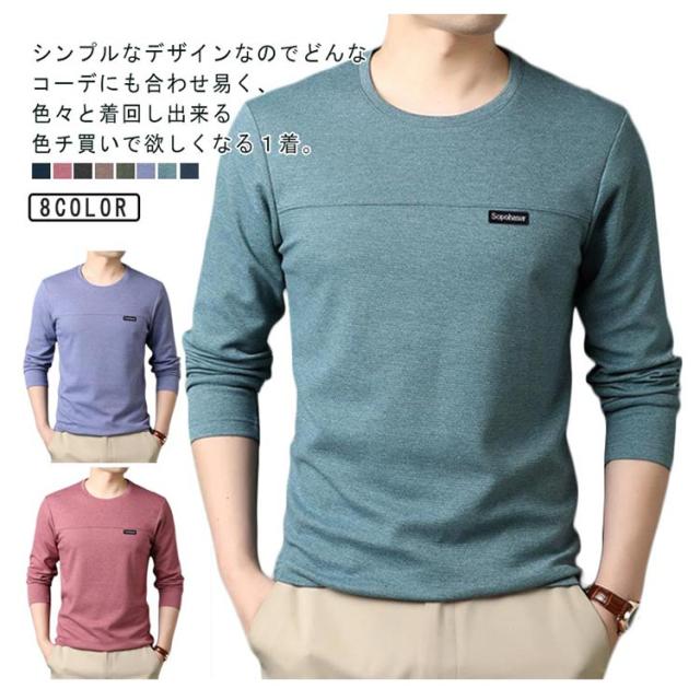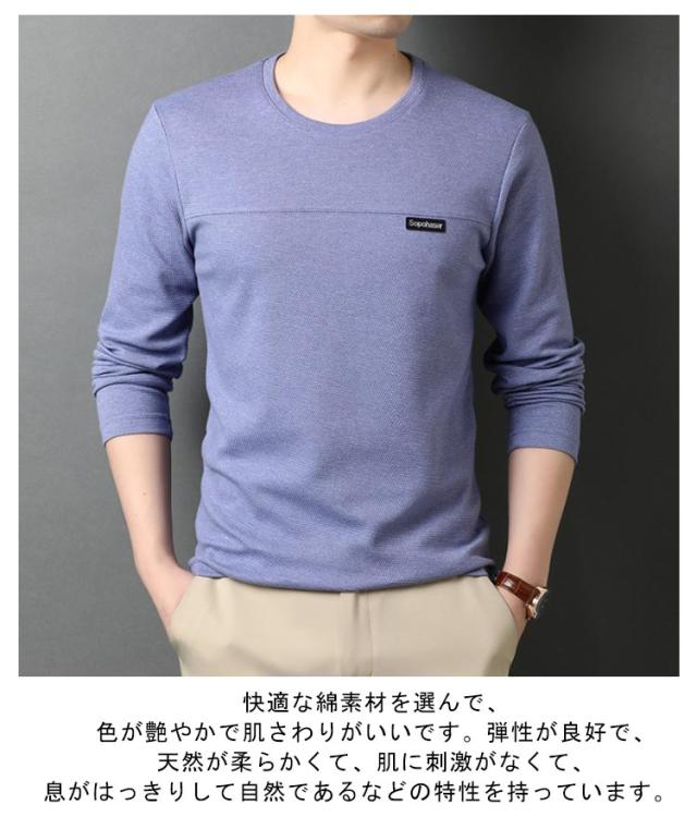 丸首 メンズ 長袖Tシャツ かっこいい トップス コットン 長袖Tシャツ ティーシャツ カジュアル インナー 肌着 春秋 男性用