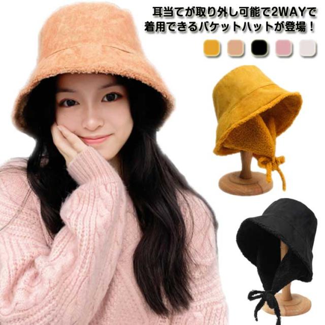 取り外し可 もこもこ 防寒 バケットハット メンズ 帽子 バケットハット レディース イヤーマフ ハット 無地 かわいい あったか おしゃれ ユニセックス ふわふわ 折りたたみ 耳当て 耳付き 2way 冬 カジュアル シンプル デイリー アウトドア キャンプ