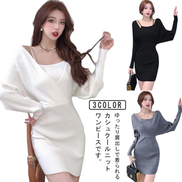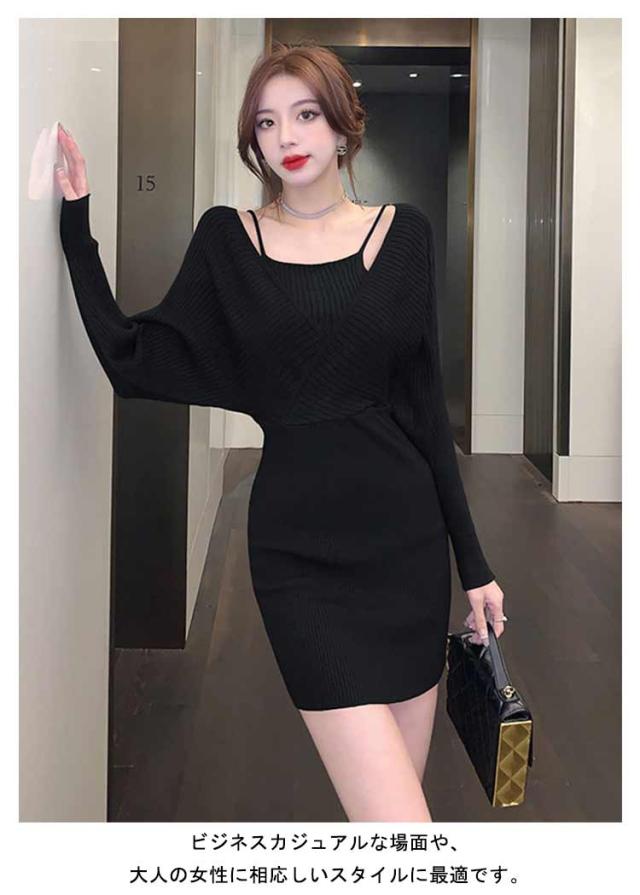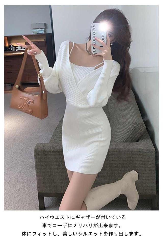 オシャレ タイト カシュクール フェイクレイヤード レディース 重ね着風 ミニワンピース 長袖 ミニ ニットワンピース ミニワンピース セクシー ミニ丈 ボディコン タイトワンピース 秋 冬 送料無料 ワンピース 無地 フェミニン きれいめ