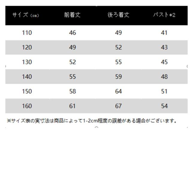 | サイズ | 110 120 130 140 150 160 |
